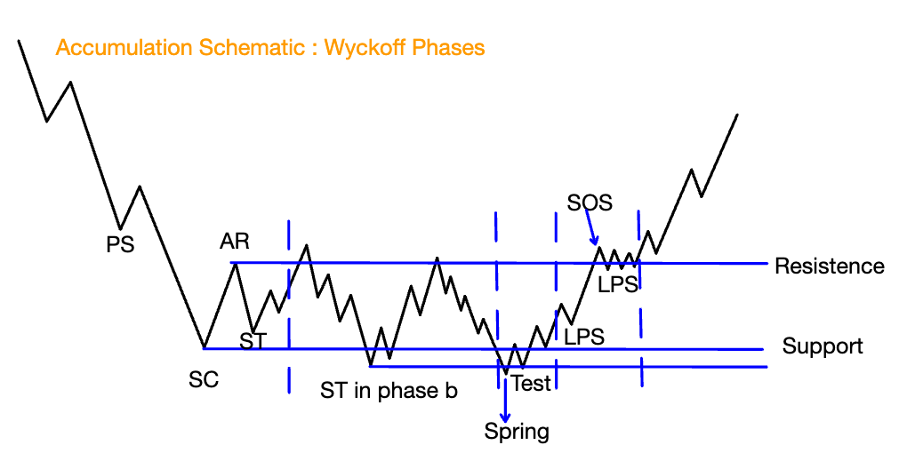 שלב האיסוף על פי סייקל המחירים של וויקוף.