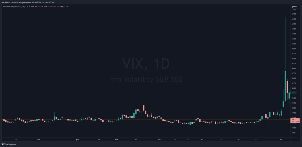 מדד ה – VIX על רקע העלייה הקיצונית בתנודתיות באוגוסט 2024 – תיק מגודר יגן על עצמו מפני עליה קיצונית כמו זו בתנודתיות.